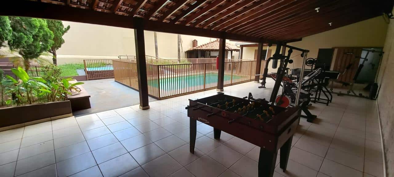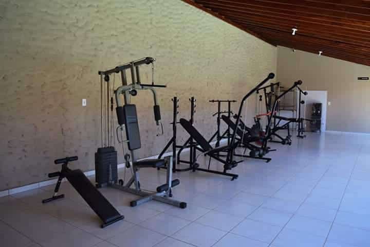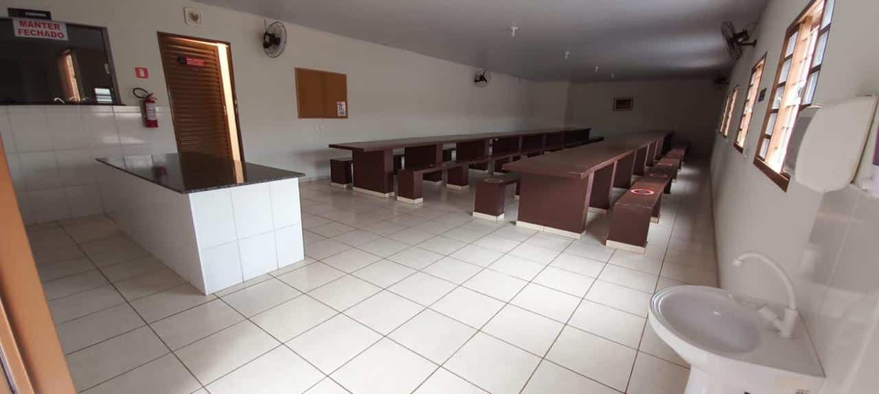 Ambientes equipados com piscina, academia, quadra para esportes, refeitório, além de uma área ampla.